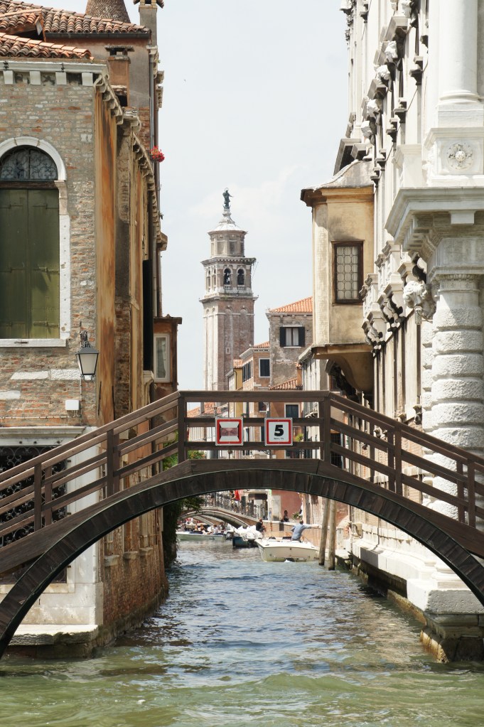 Und dort ist immer etwas los, denn das gesamte verkehrstechnische Leben spielt sich bekanntermaßen auf dem Wasser ab, ohne Schiffe, Barkassen, Boote und natürlich Gondeln läuft in der Lagunenstadt gar nichts. Die Kanäle sind die Lebensadern der Stadt, sie sind Versorgungs- und Rettungswege, dienen der Beförderung von Menschen und Lasten. Auf ihnen fahren die (sehr teuren) Taxiboote, es ertönt das Martinshorn und man sieht Blaulicht, wenn die schnellen Boote der Polizei, des Roten Kreuzes oder der Feuerwehr durch „Straßen“ in der Lagune rasen.