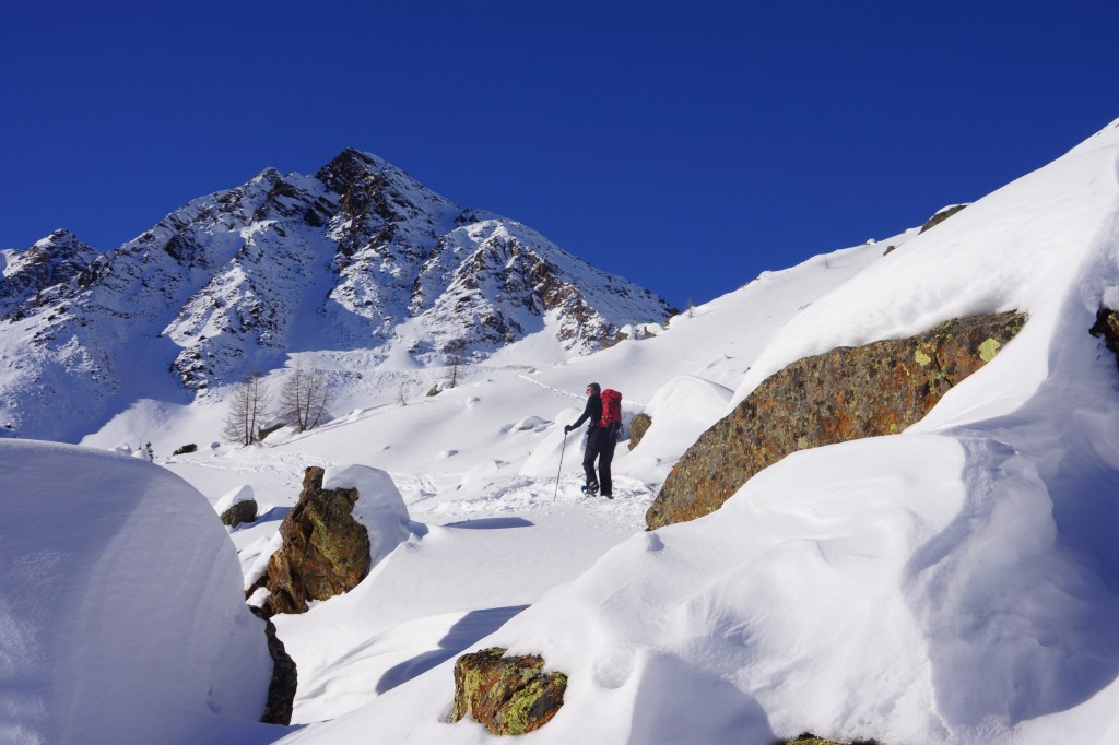 Ringsum haben Winterfreunde das puristisches Wintervergnügen. Skitourengeher haben im gesamten, 40 Kilometer langen Ultental perfekte Möglichkeiten – und absolute Schneesicherheit rund um das Gletschergebiet im Naturpark Stilfserjoch. Langläufer gleiten auf der hochalpinen Ultner Panorama-Loipe (12 – 25 km) der Sonne entgegen. Schneeschuhwanderer machen sich auf, um vorbei an den urigen Bauernhöfen zu gehen und die verschneite Winterlandschaft zu entdecken. Oder um auf absolut stillen Wegen die weiße Bergwelt zu erkunden. So zum Beispiel vom Weißbrunnsee zum Grünsee zu gehen. Ruhe ist garantiert, allenfalls Tourenskigehern begegnet man auf dem recht anspruchsvollen Weg.
